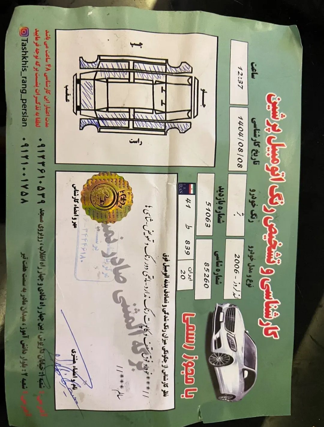 ماشین هیچگونه ضربه ای نداشته و فقط به دلیل زیبایی رنگ شده