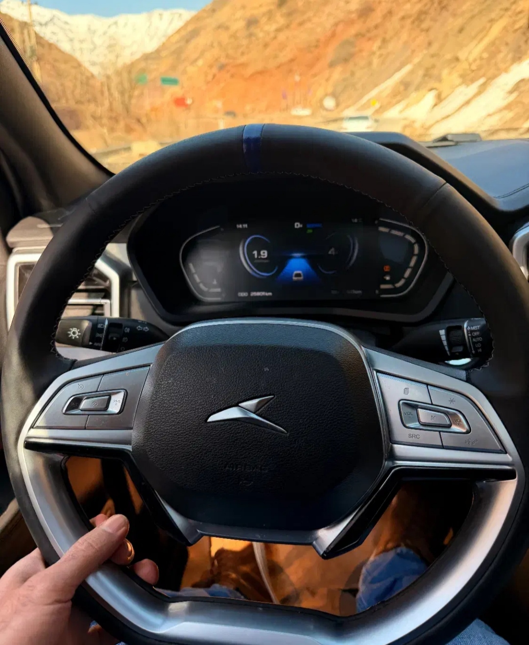 جلو پنجره ، آینه ها، ریل روی سقف و آنتن کوسه ای همه به رنگ مشکی